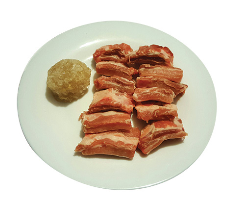 1. 用1湯匙生油起鑊,放入冰糖至完全融化後倒入排骨,炒至排骨微焦,呈金黄色