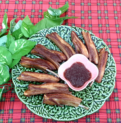 4. 將滷羊排的汁慢慢煮至濃稠至適合味道,用小碟盛起,吃羊排時蘸上汁液伴吃