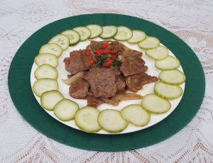 3. 炒鍋裡放2湯匙生油,將牛柳片煎至八成熟盛起備用