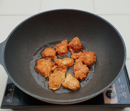 3.最後蘸上汁液盛起請盡快享用,否則炸雞可能不脆