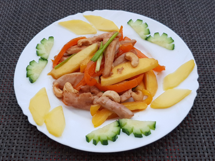 生果入饌可以使肉類有一種清香甜美的感覺,加入腰果更是甘香可口。芒果雞柳很適合在這個春、夏天季節裡做的一道開胃健康小菜。